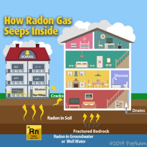 Radon is an invisible, odorless, tasteless radioactive gas produced by the breakdown of uranium in soil, rock, and water. Because the air pressure inside a house is typically lower than the pressure in the soil around its foundation, radon is drawn into the home through cracks in the foundation and other openings. Radon gas can build up to dangerous levels inside any home whether it’s old or new, sealed or drafty, and with or without a basement. Your home’s radon levels can be different than levels in your next-door neighbor’s home. The only way to know if your home has a radon problem is to have your home tested.